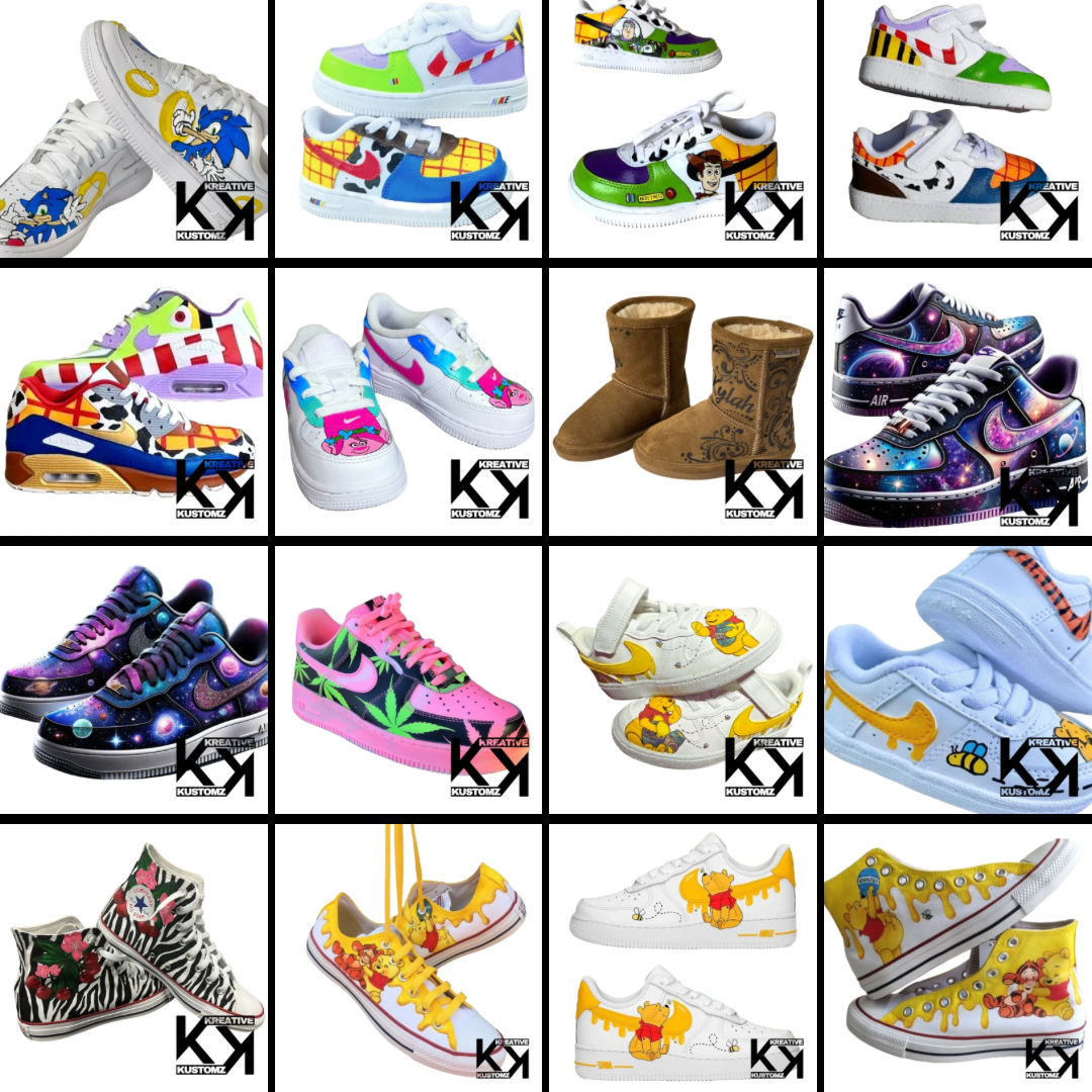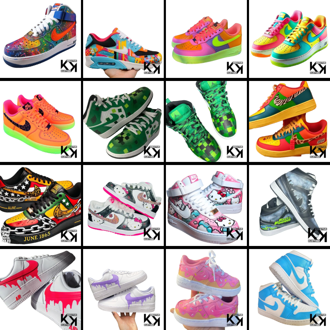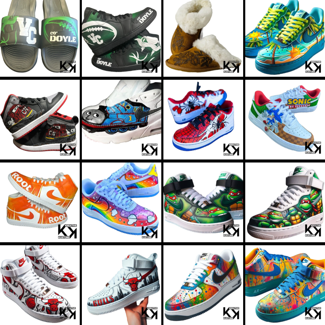 All items are meticulously hand-painted using Angelus leather paints and sealed with Angelus acrylic finisher, rendering the custom sneakers water-resistant, though not entirely waterproof. Care is advised when cleaning. Custom orders require a processing time of 4-5 weeks. For expedited orders, please reach out; an additional fee may apply. It's important to note that all orders are uniquely hand-painted for each customer, hence no refunds or exchanges can be offered. Each custom piece is an artistic interpretation made to the client's specifications, featuring genuine Nike products. KREATIVE KUSTOMZ LLC strictly opposes and does not engage in the sale of counterfeit merchandise.