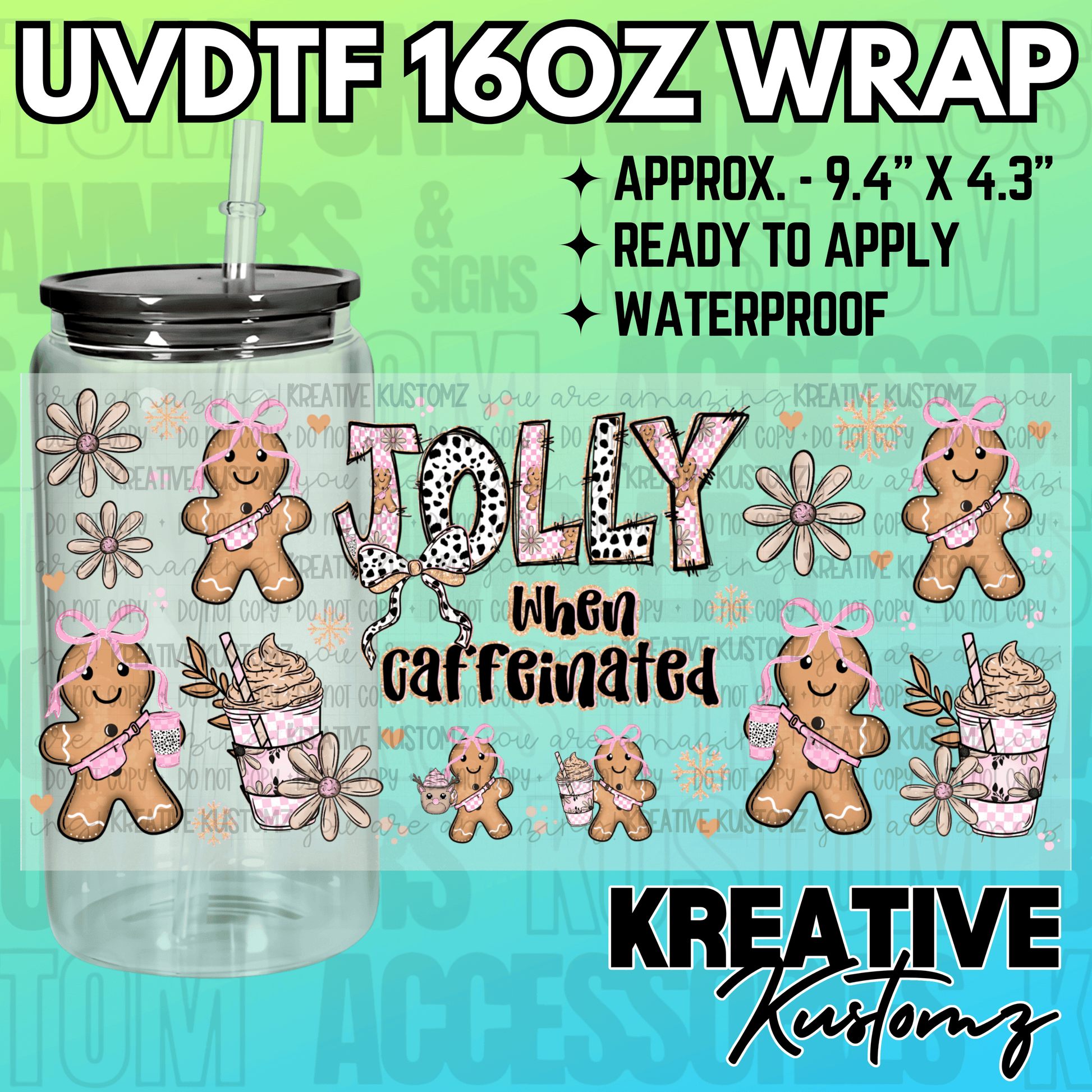 This listing is for one (1) UV DTF adhesive cup wrap for a 16oz Glass Cup size. (Cup not included)