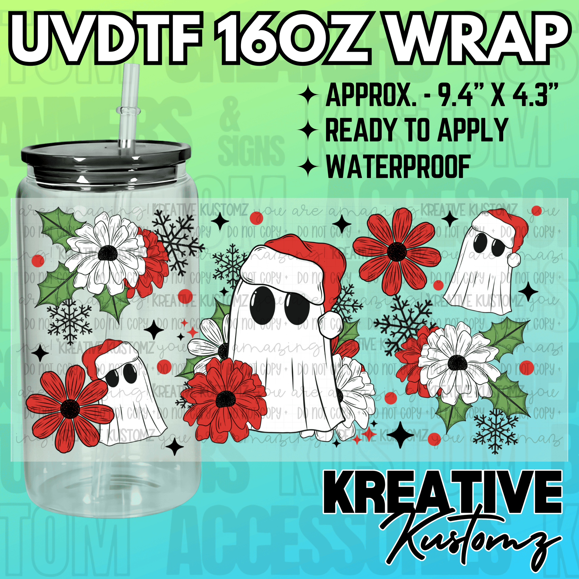 This listing is for one (1) UV DTF adhesive cup wrap for a 16oz Glass Cup size. (Cup not included)