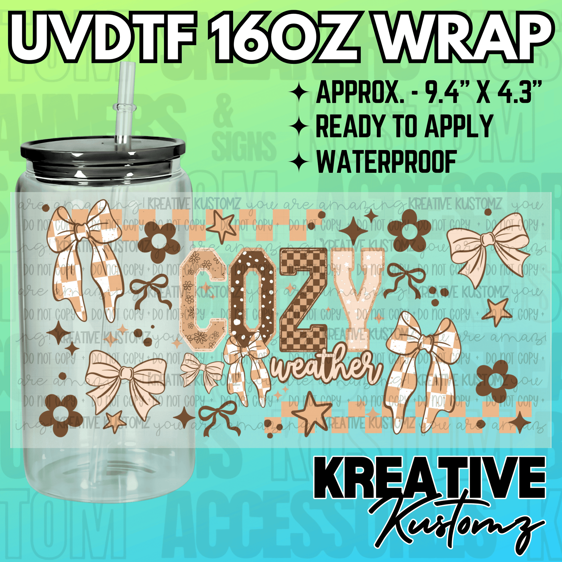 This listing is for one (1) UV DTF adhesive cup wrap for a 16oz Glass Cup size. (Cup not included)