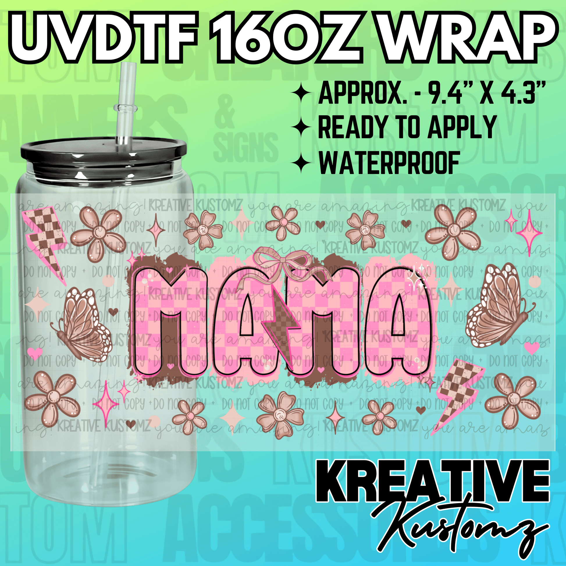 This listing is for one (1) UV DTF adhesive cup wrap for a 16oz Glass Cup size. (Cup not included)