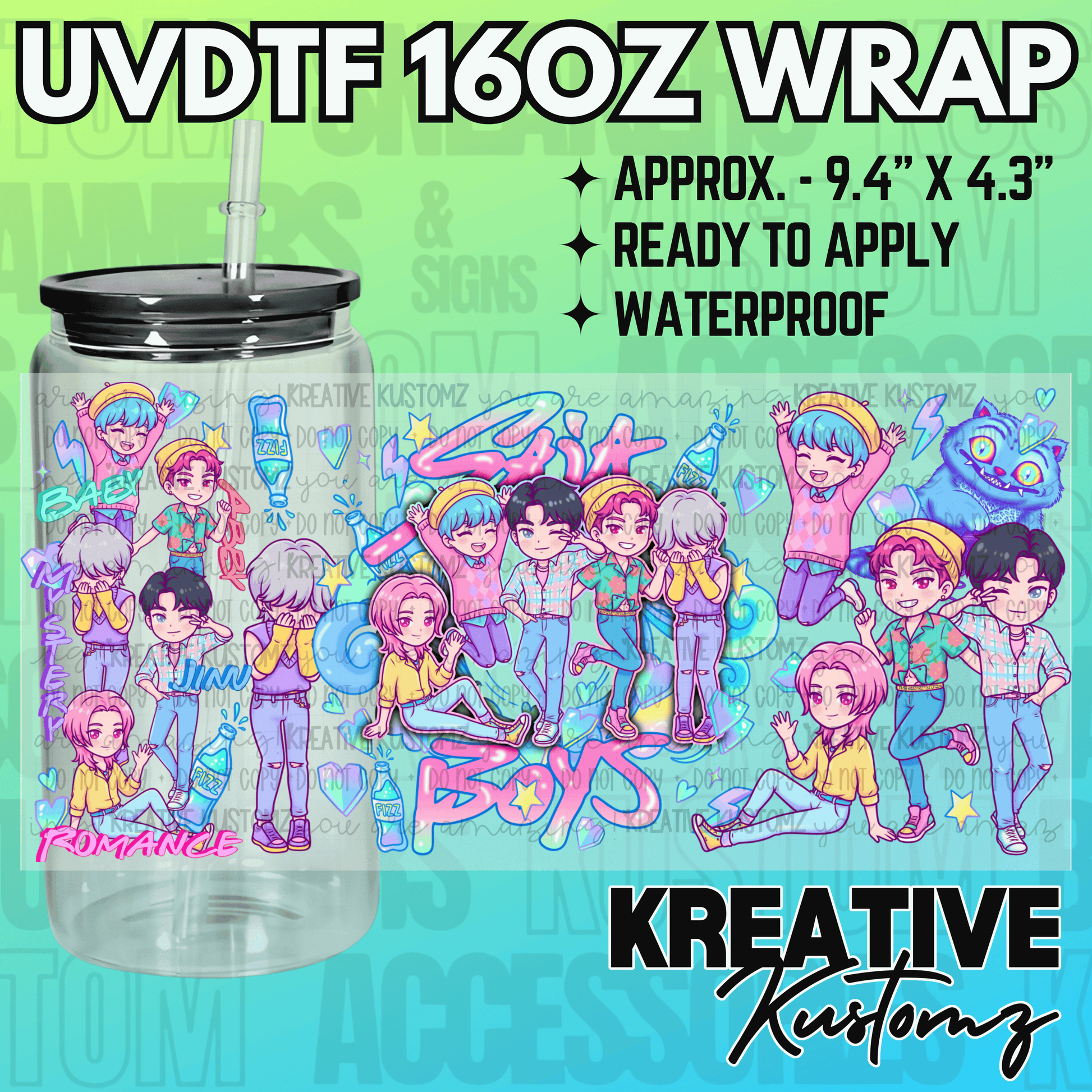 This listing is for one (1) UV DTF adhesive cup wrap for a 16oz Glass Cup size. (Cup not included)